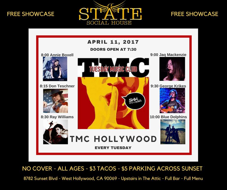 Acoustic Set @ Tuesday Night Music Club, State Social House, 8782, Sunset Blvd, West Hollywood, CA 90069.